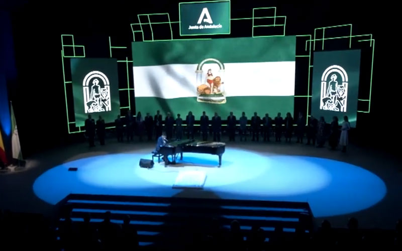 El cantante Pablo López, Medalla a la Proyección de Andalucía, ha clausurado la gala con su interpretación del himno de Andalucía. Levantándose del piano y cantando a capela sin micro, ha invitado a cantar al público para que fuera él quien cerrara el acto institucional.