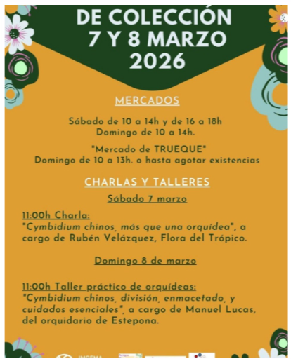 El domingo 8 sobre las 11.00 horas, se celebrará el taller práctico ‘Cymbidium chinos, división, enmacetado y cuidados esenciales”, impartido por Manuel Lucas, del orquidario de Estepona.