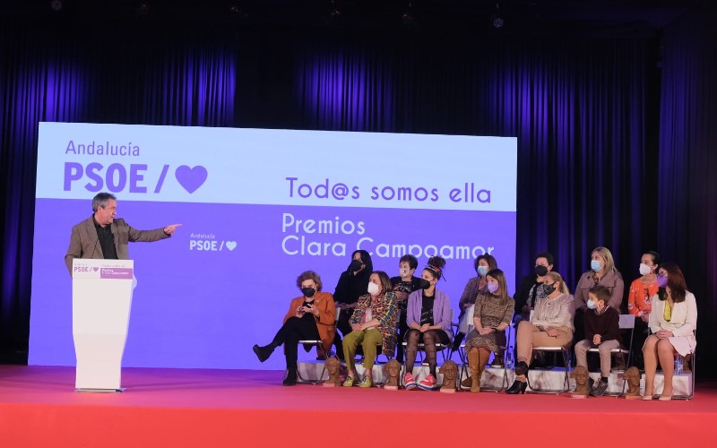 El líder del PSOE-A ha dedicado una mención especial a una de ellas, la escritora Almudena Grandes, que «sigue ganando batallas por el feminismo y visibilizando las vergüenzas de la derecha», según ha apuntado.