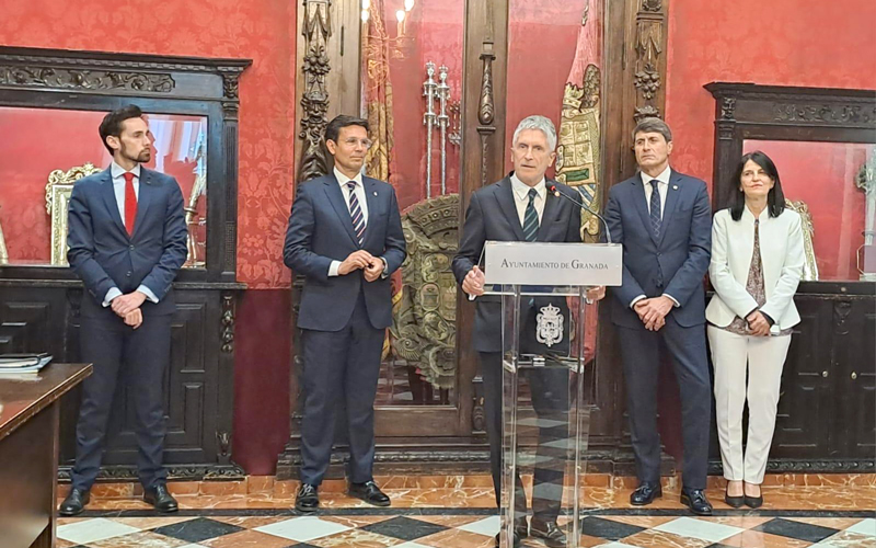 El ministro del Interior, Fernando Grande-Marlaska, ha presidido este lunes en el Ayuntamiento de Granada la reunión preparatoria y de coordinación para el diseño del dispositivo de seguridad que dará protección a la celebración del Consejo Europeo que presidirá España los próximos 5 y 6 de octubre en esta ciudad andaluza.
