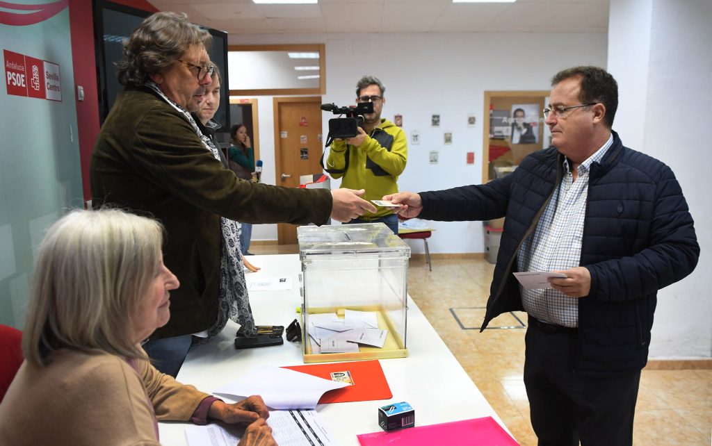 La votación presencial en urnas fue, sin embargo, la formula elegida por la secretaria general de los socialistas onubenses, María Eugenia Limón y la cordobesa Rafi Crespín, que acudió acompañada del ministro en funciones Luis Planas. También la del secretario general de la federación malagueña, Daniel Pérez, o el almeriense Juan Antonio Lorenzo.