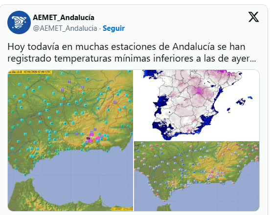 La Agencia Estatal de Meteorología (Aemet) indicó que se esperan heladas «débiles generalizadas» en el interior. Como consecuencia, en el interior de la provincia, concretamente, en Fuente de Piedra, las primeras horas de este miércoles 7 de enero alcanzó los -3.5 grados.