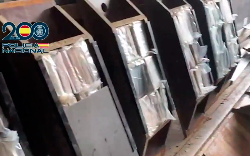 Tras identificar a los dos sospechosos, los investigadores comprobaron que en el suelo del interior del camión había ciertas irregularidades que permitieron descubrir un compartimento oculto en el que se alojaban varios paquetes perfectamente ordenados.