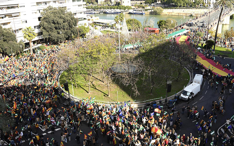 Varios miles de personas se han concentrado al mediodía de este domingo en la Plaza de Cuba de Sevilla convocadas por el Foro Economía y Sociedad bajo el lema ‘Yo defiendo Andalucía’ en la víspera de la conmemoración del 4D. Se trata de la manifestación impulsada por el PP andaluz, que trasladaba unas expectativas de más de 10.000 personas pero que finalmente no ha llegado a los 2.000 asistentes.
