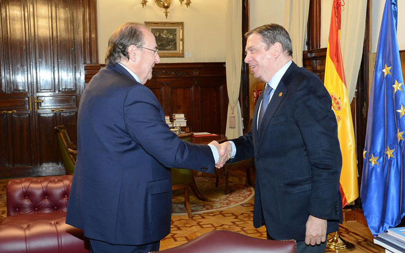 Reunión en las últimas horas del ministro de Agricultura, Pesca y Alimentación, Luis Planas, y el presidente de la Sociedad Anónima Estatal de Caución Agraria (SAECA), Pablo Pombo, con el objetivo de analizar la actividad de la entidad en 2024 y los resultados conseguidos para apoyar a los profesionales del sector.