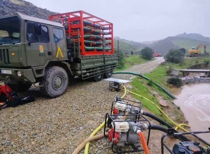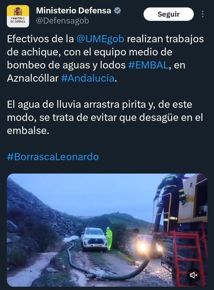 Finamente, el 112 ha descartado el riesgo de vertido en la Mina de Aznalcóllar tras el despliegue de la UME debido a la borrasca Leonardo.