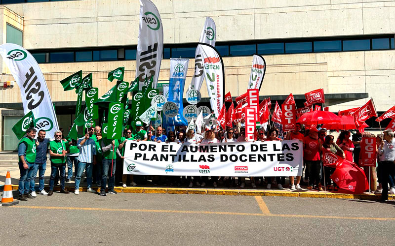 Los sindicatos de la Mesa Sectorial de Educación en Andalucía (CSIF, ANPE, Ustea, CCOO y UGT) se concentrarán hoy miércoles, a las 12,00 horas, a las puertas de la sede de la Consejería de Desarrollo Educativo y Formación Profesional de la Junta de Andalucía para exigir que se «retome el diálogo y la negociación» para incrementar las plantillas docentes en la comunidad autonóma, una «necesidad» que las organizaciones sindicales consideran «urgentísima» para «avanzar en medidas que refuercen el sistema educativo público andaluz y dignifiquen la labor del profesorado».