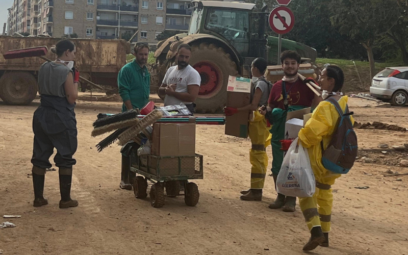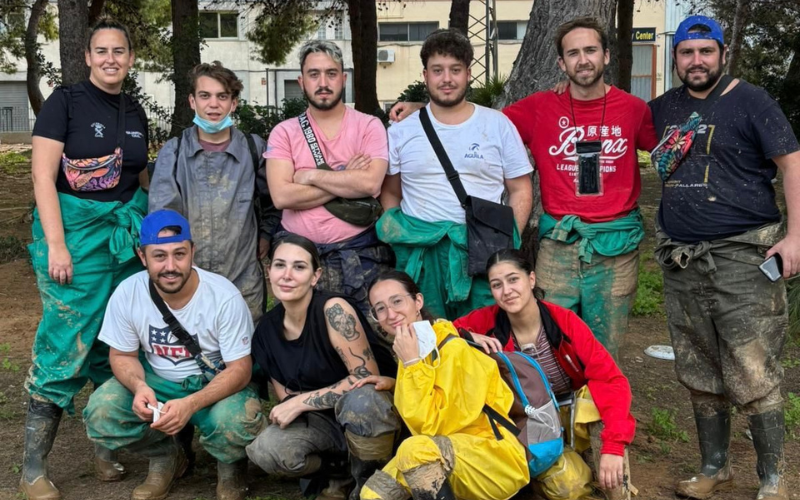 El sábado el equipo continuó ayudando en distintos puntos de la zona afectada, pero regresó a la misma urbanización para completar el trabajo iniciado. Además de colaborar en labores de limpieza, estos jóvenes ofrecieron apoyo emocional a los residentes, brindándoles palabras de ánimo y escuchando sus testimonios. Durante su estancia, los voluntarios se dividieron para alojarse: algunos se hospedaron en un hostal, mientras que otros pasaron las noches en el Polideportivo de Silla, que ofrecía alojamiento temporal para los voluntarios. Asimismo, el grupo quiso agradecer especialmente al Centro Cultural Andaluz Dansart Silla, que, tras cada extenuante jornada de trabajo, les recibía con comida caliente y una gran sonrisa. “Después de horas de trabajo y cansancio, era muy reconfortante ver que alguien te esperaba con una comida caliente y unas palabras de apoyo”, comentó uno de los voluntarios.