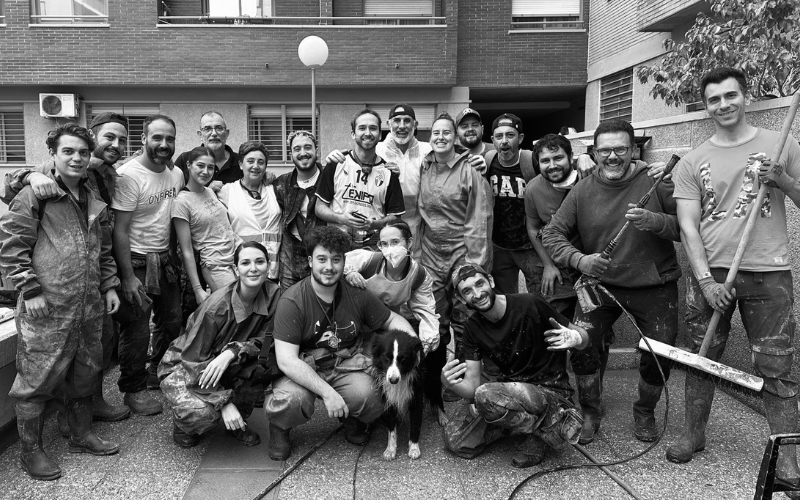El sábado el equipo continuó ayudando en distintos puntos de la zona afectada, pero regresó a la misma urbanización para completar el trabajo iniciado. Además de colaborar en labores de limpieza, estos jóvenes ofrecieron apoyo emocional a los residentes, brindándoles palabras de ánimo y escuchando sus testimonios. Durante su estancia, los voluntarios se dividieron para alojarse: algunos se hospedaron en un hostal, mientras que otros pasaron las noches en el Polideportivo de Silla, que ofrecía alojamiento temporal para los voluntarios. Asimismo, el grupo quiso agradecer especialmente al Centro Cultural Andaluz Dansart Silla, que, tras cada extenuante jornada de trabajo, les recibía con comida caliente y una gran sonrisa. “Después de horas de trabajo y cansancio, era muy reconfortante ver que alguien te esperaba con una comida caliente y unas palabras de apoyo”, comentó uno de los voluntarios.