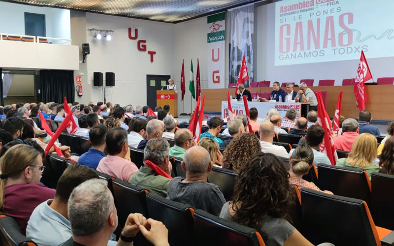 300 delegadas y delegados de la Federación de Industria, Construcción y Agro, FICA UGT Andalucía, han celebrado una asamblea en Sevilla, con la intervención de Mariano Hoya, el secretario General de FICA a nivel federal; Carmen Castilla, secretaria General de UGT Andalucía; José Manuel Rodríguez Saucedo, secretario General de FICA Andalucía; y los responsables locales de UGT, Juan Bautista y FICA Sevilla, Manuel Ponce.