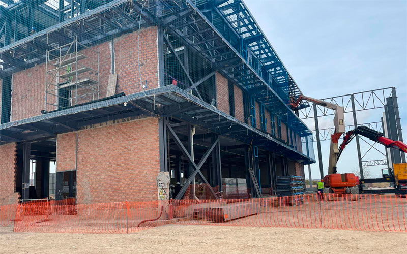 Los trabajos, que se iniciaron a finales de 2022, se centran en estos momentos en la ejecución de diversas labores de estructura metálica, cerramientos y elementos de urbanización.