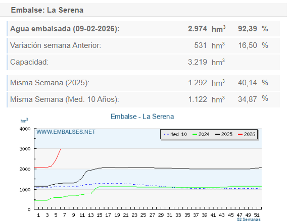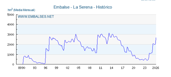 Numerosos embalses a nivel nacional han registrado estos últimos días récords de acumulación de agua, hasta el punto de tener que desembalsar. Entre ellos, destaca el embalse de la Serena, Badajoz.