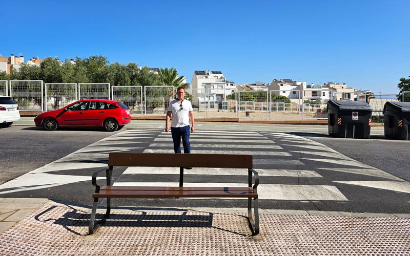 Las dificultades de accesibilidad y movilidad para los peatones llegan a situaciones tan ridículas y surrealistas como en el caso del paso sobreelevado situado junto al complejo deportivo de Las Fuentezuelas, un reductor que se ha construido frente a un banco en la acera que coincide justo con el acceso al paso de peatones, “de tal manera que las personas o lo saltan o lo rodean”, detalla Padorno.