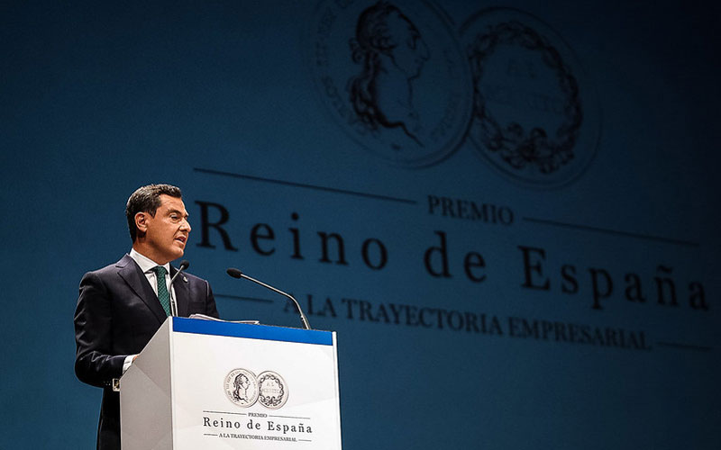 Así lo ha manifestado Moreno durante su intervención en el acto de entrega del VI Premio Reino de España Trayectoria Empresarial al presidente del Grupo Consentino, Francisco Martínez-Cosentino, que ha sido presidido por el Rey Felipe VI y se ha celebrado en el Auditorio Maestro Padilla de Almería.