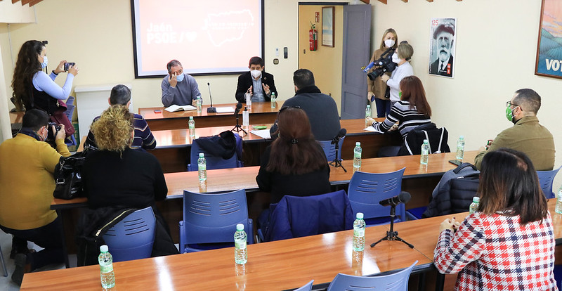 En la sede provincial jiennense, el candidato socialista a la Junta de Andalucía ha estado presente también el secretario general del PSOE de Jaén, Francisco Reyes.