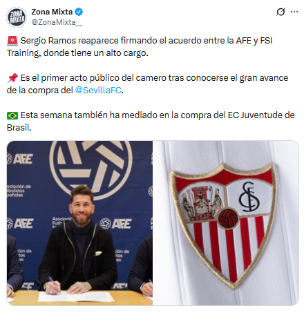 Segio Ramos, cabeza visible del holding que negocia la adquisición del paquete mayoritario del Sevilla FC, ultima en Brasil la de un club de la Série B.