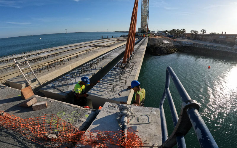 El Ministerio de Transportes y Movilidad Sostenible abre mañana al tráfico el puente José León de Carranza, que une las orillas de Cádiz y el municipio de Puerto Real, cuyos trabajos de mantenimiento y conservación encaran la recta final.