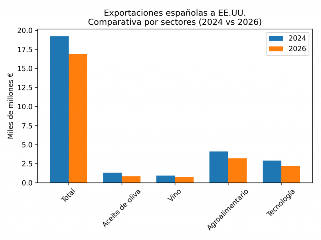 Andalucía exporta alrededor de 3.000 millones de euros anuales a EE. UU., con más de 1.000 millones concentrados en el sector agroalimentario.
